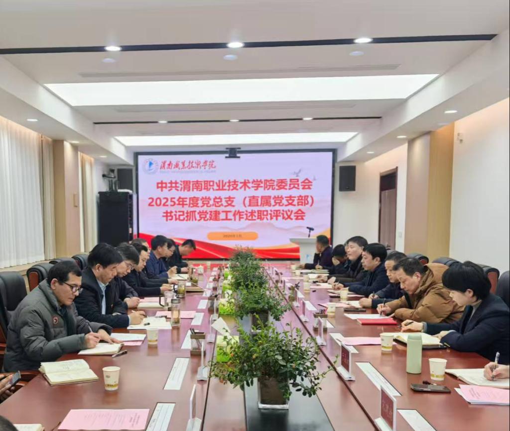 1月29日下午,渭南职业技术学院2025年度党总支(直属党支部)书记抓党建工作述职评议会在学校会议室隆重召开。会议以“复盘成效、直面问题、压实责任、提质增效”为核心,全面检阅基层党建工作实绩,精准谋划下一步发展路径。党委书记陈峰主持会议并作总结讲话,学校领导班子成员、党群部门负责人、党支部书记代表参加会议,市委组织部派员到会指导。